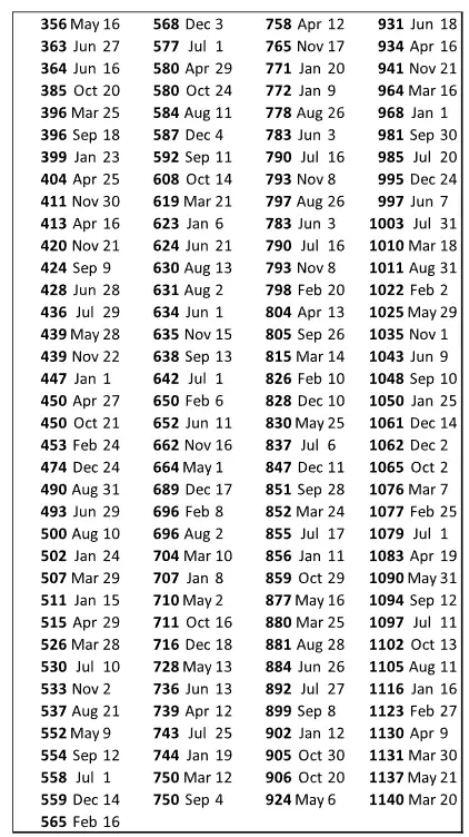 Каждая «станция» в этой таблице соответствовала новолунию, во время которого могло произойти затмение. Большинство из них были расположены с интервалом в шесть лунных месяцев, примерно 177 дней. Это не случайность — именно такой период нужен Луне, чтобы вернуться в положение между Землей и Солнцем, необходимое для затмения.
