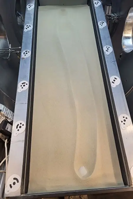 Настроив оборудование так, чтобы оно имитировало разреженный холодный воздух Марса, команда сбрасывала блоки сухого льда на песчаные склоны с разным углом наклона и размером песчинок. Результаты фиксировались с помощью высокоскоростных камер.
