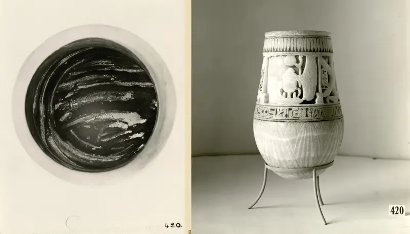 Кстати, алебастр (кальцит), из которого сделаны сосуды, ценился египтянами не только за красоту, но и за свои практические свойства. Этот материал хорошо сохранял прохладу, что могло быть важным для хранения вязких опиумных смол.