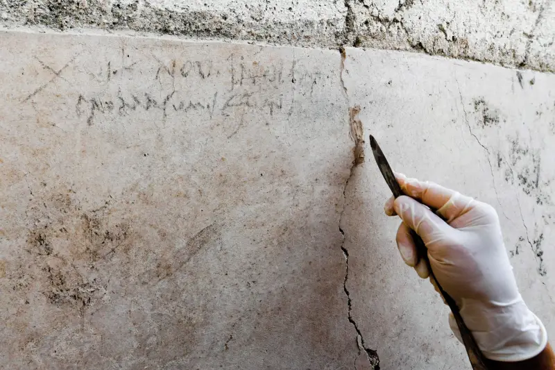 В 2018 году во время масштабных раскопок в новом, ранее малоизученном районе Регио V, археологи сделали сенсационную находку. В «Доме с садом», который, судя по всему, был на ремонте, на одной из стен они обнаружили надпись, нацарапанную древесным углем.