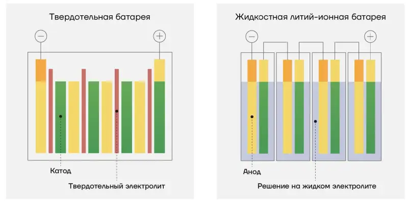 Следовательно, в таких аккумуляторах вероятность короткого замыкания и последующего термического разгона значительно снижена. Даже в случае серьезного повреждения твердый электролит не воспламеняется, что сводит на нет риск взрыва и пожара.