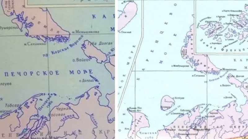 Но стоит развернуть карту СССР 1940 года, и Печорское море снова исчезает, как будто его поглотил туман. На политической карте оставили Восточно-Сибирское моря, а вместо Печорского аккуратно подписали лишь пролив Карские Ворота.