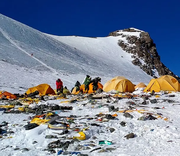 Национальный парк Сагарматха, в который стекаются тысячи туристов и альпинистов, ежегодно принимает до 1000 тонн твердых отходов. Это все, что гости привозят с собой: продукты, снаряжение, упаковка. Но если внизу мусор худо-бедно вывозят, то на самих склонах Эвереста, выше базового лагеря, он накапливается годами. По самым оптимистичным оценкам, там уже лежит 50 тонн брошенного снаряжения, пустых баллонов и прочих отходов.