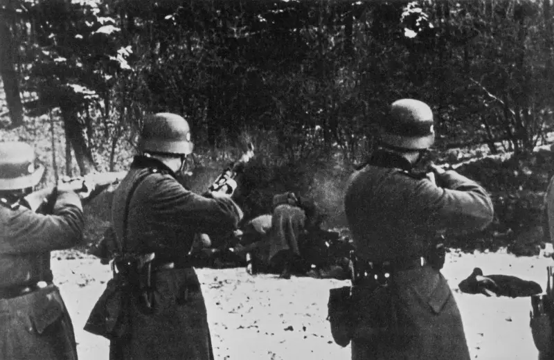 Солдаты Вермахта расстреливают польских граждан во время Второй мировой войны
