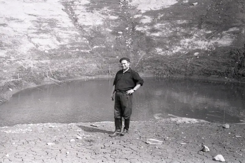 Матвей Омшев на дне пропавшего озера. 1977 год