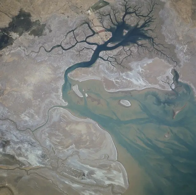 Это русло, которое сегодня называется Вади-эль-Батин, многие исследователи считают главным кандидатом на роль библейского Фисона. Современные спутниковые снимки зафиксировали его гигантскую дельту в районе Персидского залива, где рельеф с дюнами и глубокими впадинами до сих пор хранит память о могущественном водном потоке. Таким образом, данные с орбиты позволили увидеть не просто высохшее русло, а контуры целой исчезнувшей речной системы, некогда определявшей жизнь региона.