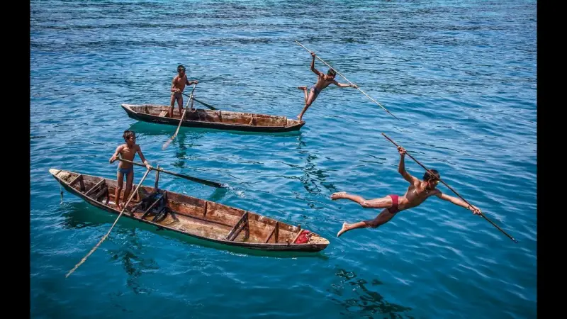 Более восьми часов в день проводит в воде обычный индонезийский рыбак. Причем почти пять из них он находится под водой без акваланга, без массивных баллонов сжатого воздуха. Только деревянные остроги, полученные по наследству. Для нас погружение на глубину — это экстремальный спорт, требующий изнурительных тренировок. Для них — это повседневная рутина и способ прокормить семью.