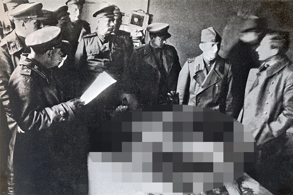 Процедура опознания останков Геббельса. С документами в руке - начальник УКР «Смерш» 1-го Белорусского фронта генерал-лейтенант Вадис А.А