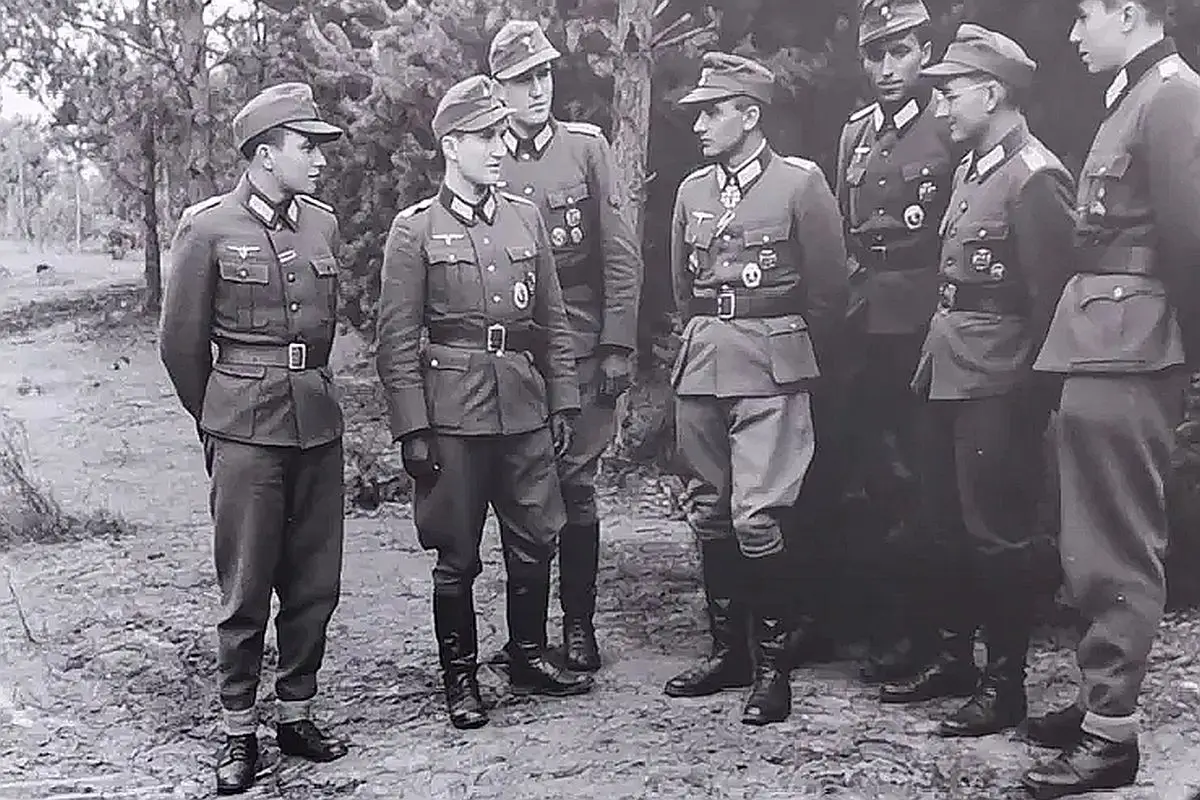 Один из фигурантов дела Вернер Вильгельм Нойман (на фото четвертый справа) беседует с офицерами вермахта